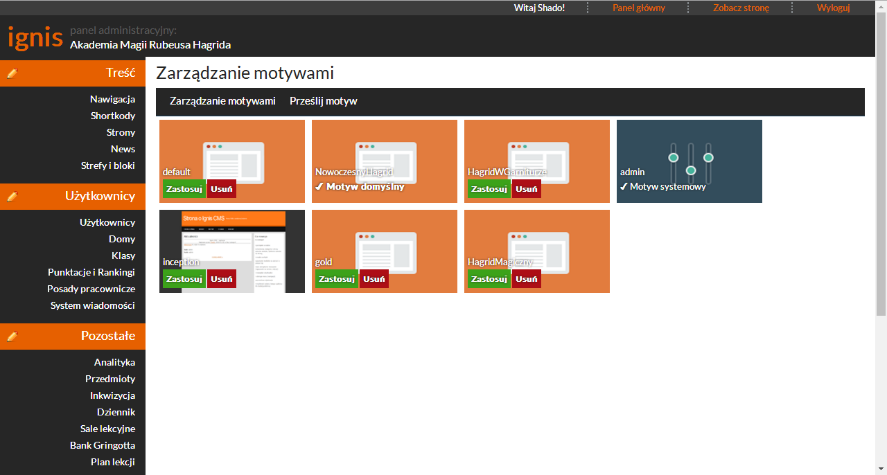 Zarządzanie themami strony.